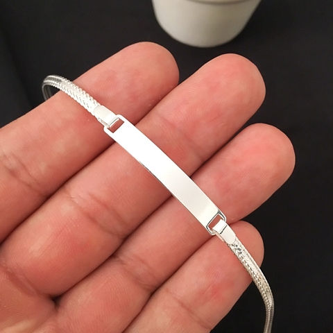 Pulseira de Prata de Placa & corrente grummet.
